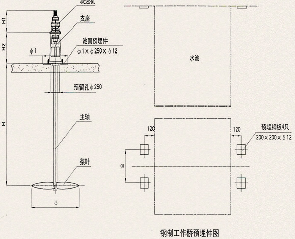 3. 如果是敞口池体需工作桥架的,需核实预埋钢板尺寸。